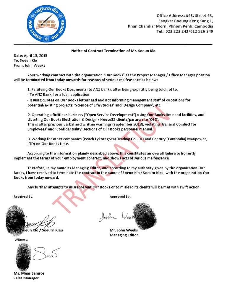 Sample Employment Termination Letter At Sale Of Company - 35 Perfect Termination Letter Samples Lease Employee Contract : A key part of the termination process.